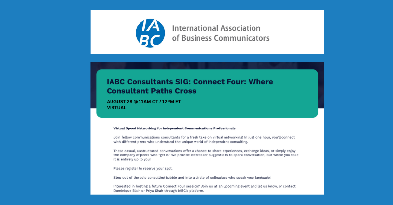 IABC Minnesota will host a Holiday Connect on Thursday, December 18, at 12 p.m. CT / 1 p.m. ET.  Curious about the International Association of Business Communicators (IABC) and what it can offer you? Join the chapter for a FREE online chat where you can learn all about IABC, hear firsthand insights from members about […]