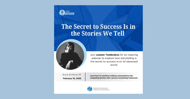 Join IABC for “The Secret to Success Is in the Stories We Tell” on Thursday, February 19, at 12 p.m. ET.